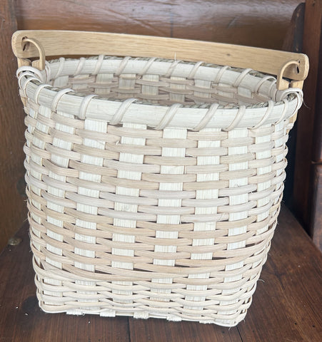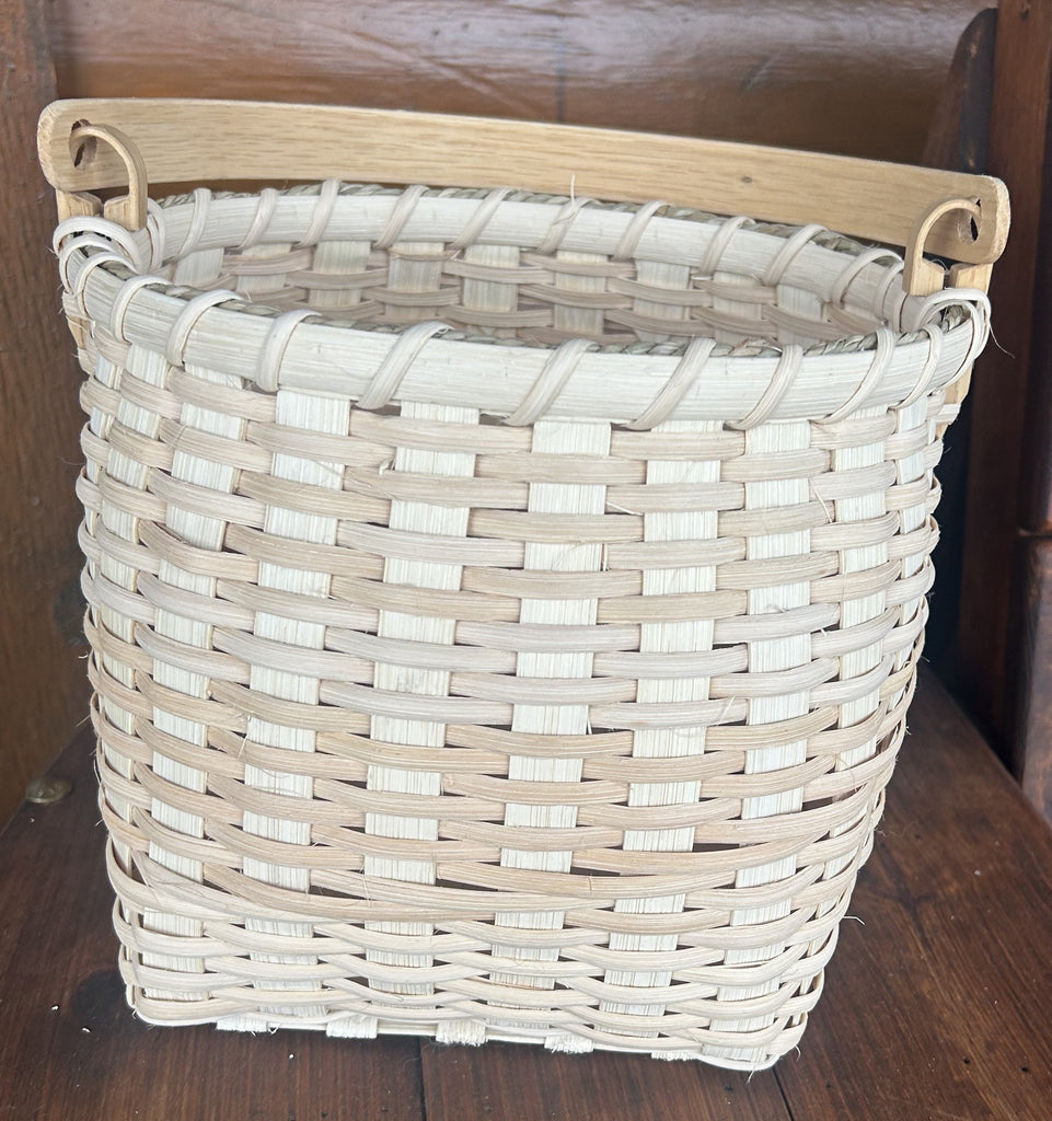 This basket has woven bottom, and uses a continuous weave rows, so it will go fasters, as a long piece of reed can be woven around until it runs out. The focal point of this basket is the beautiful Mountain Swing Handle which gets added prior to rimming the basket.**There will be a few styles of handles to choose from.....rounded or flat/square tops.**
